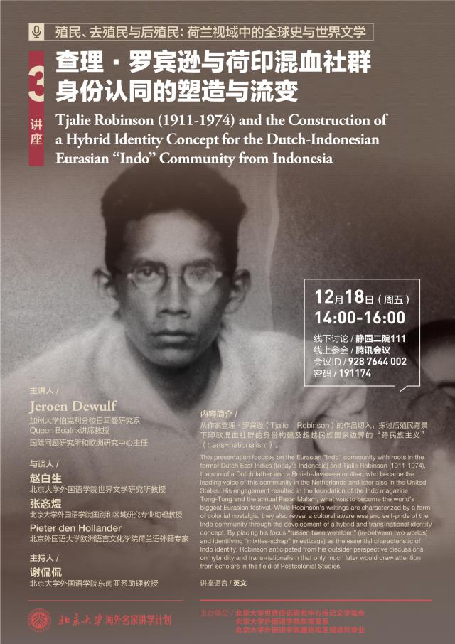 北京大学海外名家讲学计划:查理·罗宾逊与荷印混血社群身份认同的塑造与流变