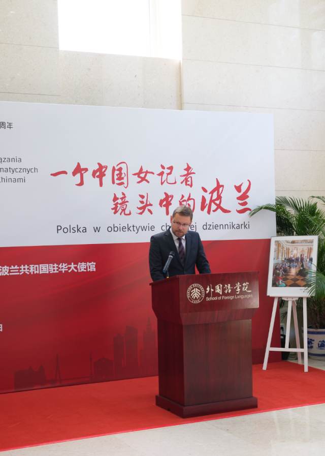 北京大学党委常委、宣传部部长蒋朗朗先生致开幕词。蒋朗朗先生对本次摄影展的召开表示了衷心的祝贺,在致辞中,他回顾了中欧两国70年来的友好情谊,并表示希望以此次摄影展为契机增进青年一代对波兰文化的了解,同时加强凯发官方网站,凯发kaifa(中国)与波兰学者、研究机构之间的联系,为中波友好关系添砖加瓦,建言献策。