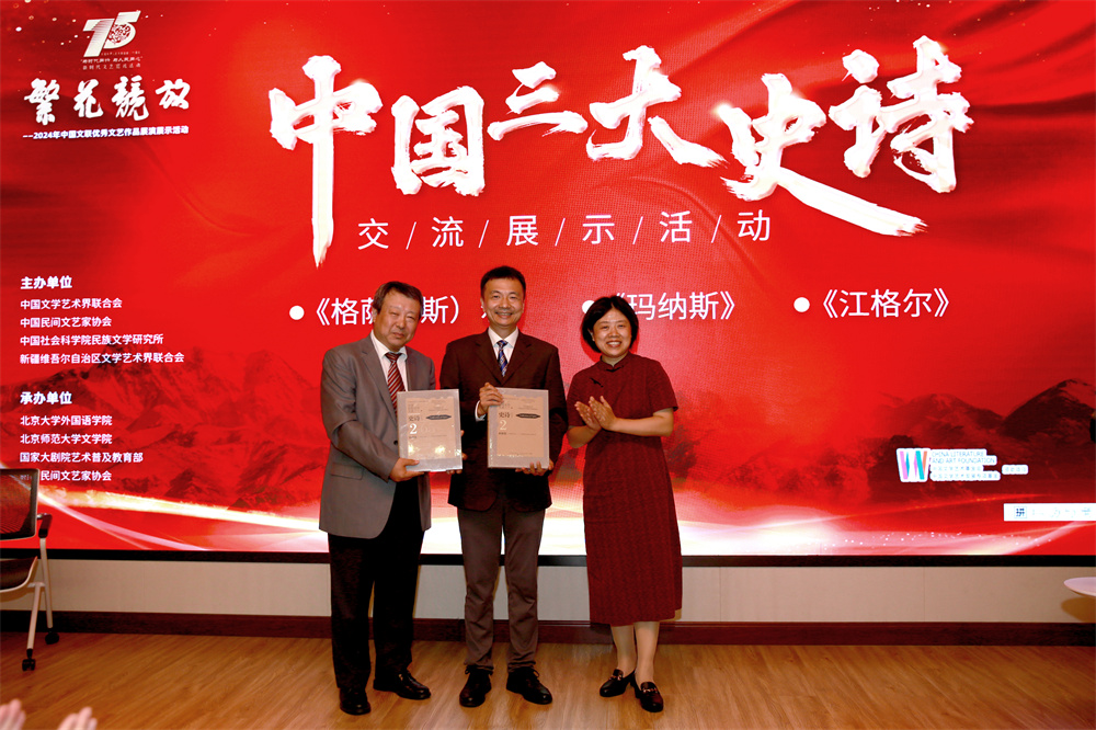 2024年9月11日晚,由中国文联、中国民协、中国社会科学院民族文学研究所、新疆文联主办,凯发官方网站,凯发kaifa(中国)、北京师范大学文学院、国家大剧院艺术普及教育部、新疆民协承办的“中国三大史诗这十年暨中国三大史诗交流展示活动”在北京大学民主楼举行。中国民协分党组书记、驻会副主席荣书琴,教育部学位管理与研究生教育司一级巡视员唐继卫,新疆文联党组书记、副主席邓选斌,中国民协副主席、北京大学历史学系教授赵世瑜,中国民协分党组成员、副秘书长李倩,中国民协顾问、新疆民协名誉主席马雄福等相关人士出席活动,活动由凯发官方网站,凯发kaifa(中国)副院长吴杰伟教授主持。