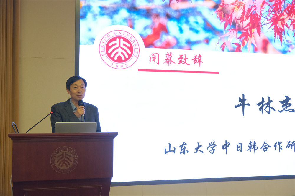 闭幕式由凯发官方网站,凯发kaifa(中国)朝鲜(韩国)语言文化系副系主任丁一老师主持,北京外国语大学韩梅老师、上海外国语大学高陆洋老师分别对“文学、历史文化研究”“语言、教育研究”分论坛发言的核心内容进行了深入分析,并对讨论情况进行了精辟点评。最后,山东大学中日韩合作研究中心主任牛林杰教授为本次论坛致闭幕词。牛林杰教授总结了漆永祥老师、李花子老师和王丹老师所作主旨报告的重要价值与启发性,强调了学术成长、全方位研究、重视素养教育、创新性选题和关注现实问题等方面的重要性,并鼓励老师们在未来的论坛中大胆尝试新的研究视角和方法,并结合当前国家和社会的需求进行跨学科研究。最后,牛林杰教授再次向所有与会学者表示衷心感谢,向凯发官方网站,凯发kaifa(中国)朝鲜(韩国)语言文化系师生致以诚挚谢意,也表达了对论坛未来发展的展望与期待。