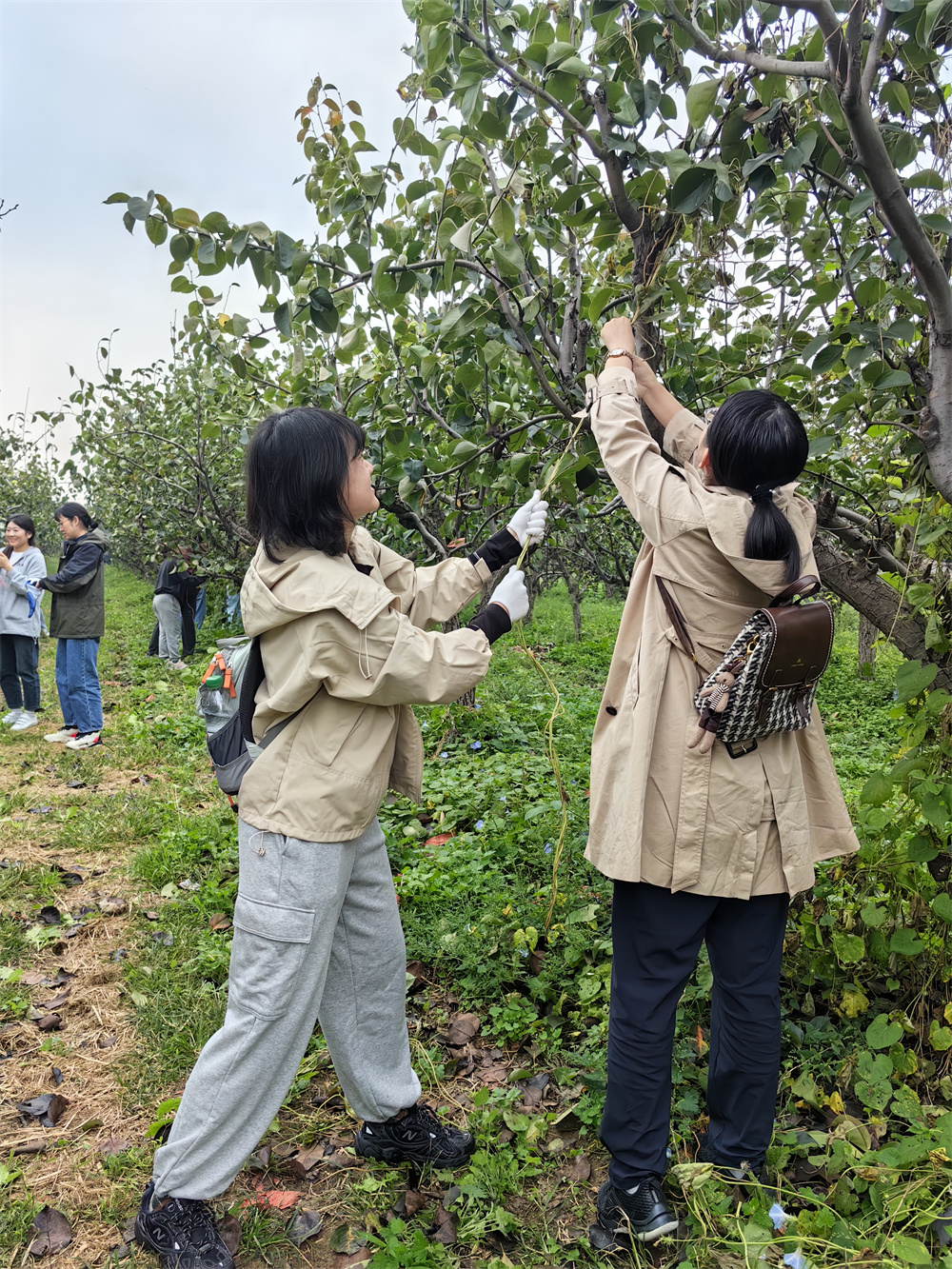 窦店村“三仁御园”金梨园作为2008年北京奥运会特供果品基地,致力于发展乡村旅游和休闲服务,同时采用标准化、精细化、信息化管理,在行业内率先实现了可追溯性生产,建成了集民族文化、民族品牌、民族产品于一体的精品农业典范文化园。金秋时节瓜果飘香,园内两万余株奥运金梨树正处于盛果期,部分树木和田地由于生长速度过快,残留了许多树木断枝与杂草,同学们在工作人员的指导带领下踏入梨树种植区,撸起衣袖一株一株进行修剪,将堆置的残枝败叶全部归置整齐,同时对周围的环境卫生也进行了打扫和清理,在亲近自然、享受秋日收获喜悦的同时,增强了环保意识,美化了梨园环境。