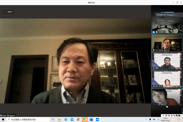 林丰民教授首先代表中国外国文学学会阿拉伯文学研究分会和北京大学阿拉伯语系致辞。他对2020年阿拉伯文学研究界的情况进行了简要的回顾,对今年去世的两位阿拉伯文学研究巨擘仲跻昆先生和郅溥浩先生表达追思,并对2021年阿拉伯文学研究的发展提出新的目标和方向。林丰民表示2021年将举办如“纪伯伦逝世90周年纪念研讨会”和“马哈福兹诞辰110周年研讨会”等专题研讨会,希望大家能够传承前辈的学术精神,更加努力进行教学和研究工作,更加积极参与文学探讨和交流活动。
