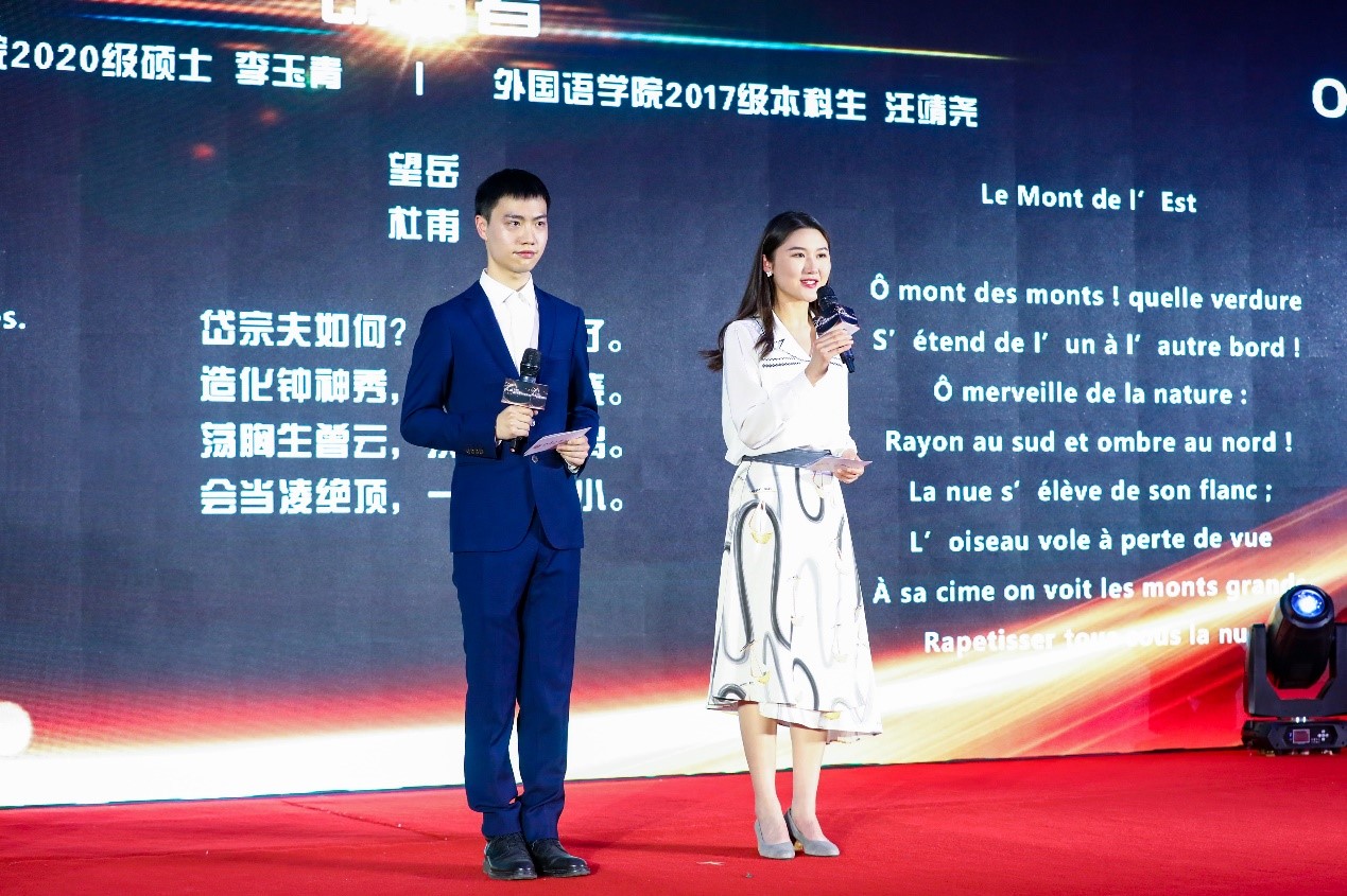凯发官方网站,凯发kaifa(中国)2020级英语翻译硕士李玉青、2017级法语系本科生汪靖尧现场朗诵许渊冲先生中译英、中译法诗歌代表作《别丢掉》《别董大》《望岳》,展示先生文辞优美、韵律工整、气势恢宏的翻译作品,代表广大学子向先生送上生日祝福。