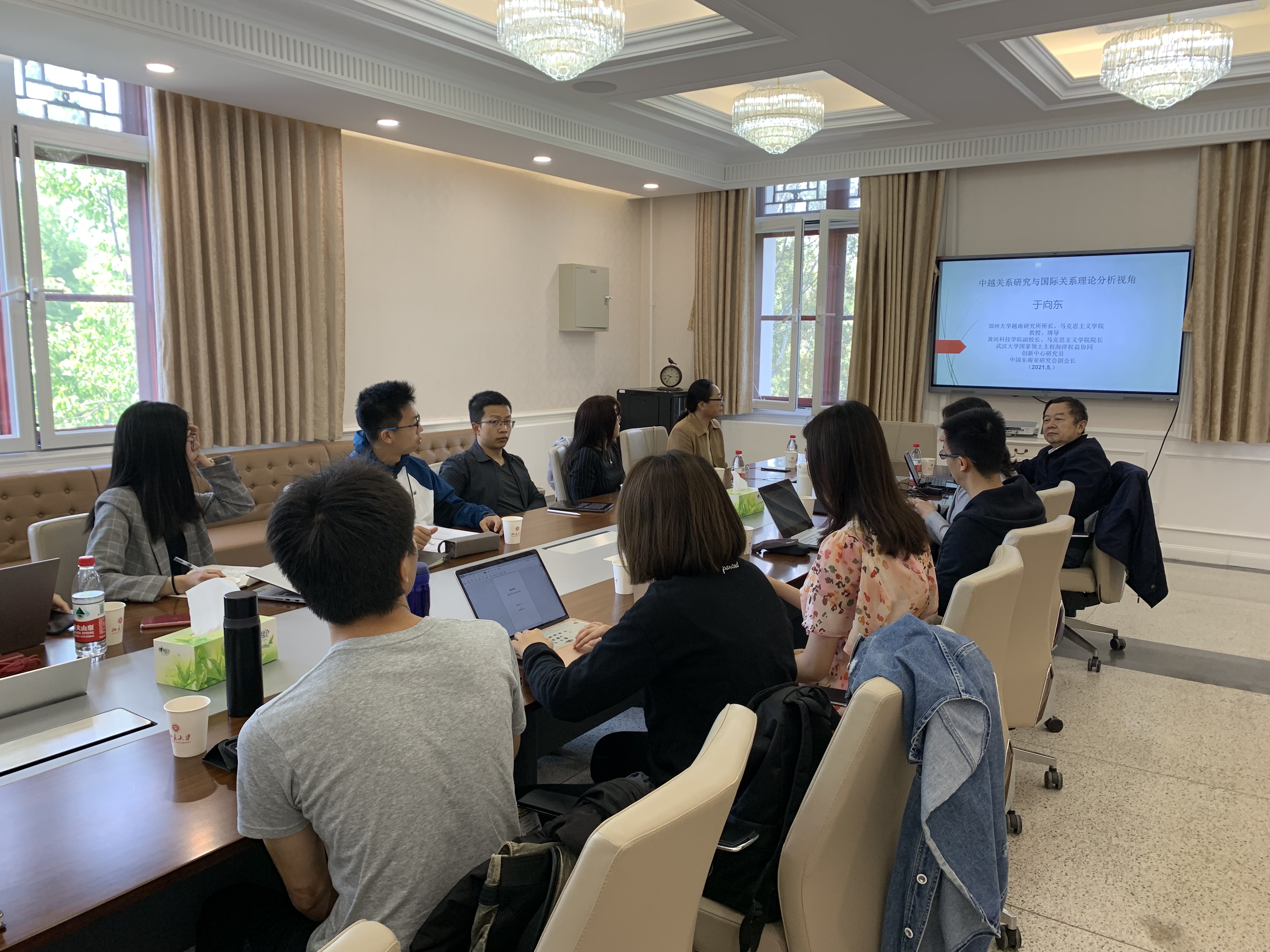 对于越南问题和中越关系的研究,于教授认为,应将中越关系研究与历史唯物主义紧密相连,准确把握中越关系,分清主流与支流,不能否认或隔断歪曲历史,并强调要开展跨学科、跨领域的综合性研究。于向东教授把中越关系研究中的一些问题放在国际关系理论和分析方法的框架下进行解读,例如从威斯特伐利亚体系与宗藩体系看中越关系,用“不对称性理论”去解读越南对中国的应对模式等。最后,于向东教授总结了越南研究相关理论和分析方法,指出越南研究实质上也是一种跨学科综合性研究,需要各学科领域的丰富知识和跨学科研究方法。于向东教授的报告既有理论高度,又有对越南和中越关系研究具体问题的分析和解读,同时还结合自己多年学术研究心得以及在越访学工作多年的经验,为在座师生提供了很多有益的启发,使大家对中越关系基本问题与理论分析框架有了更清晰的把握。