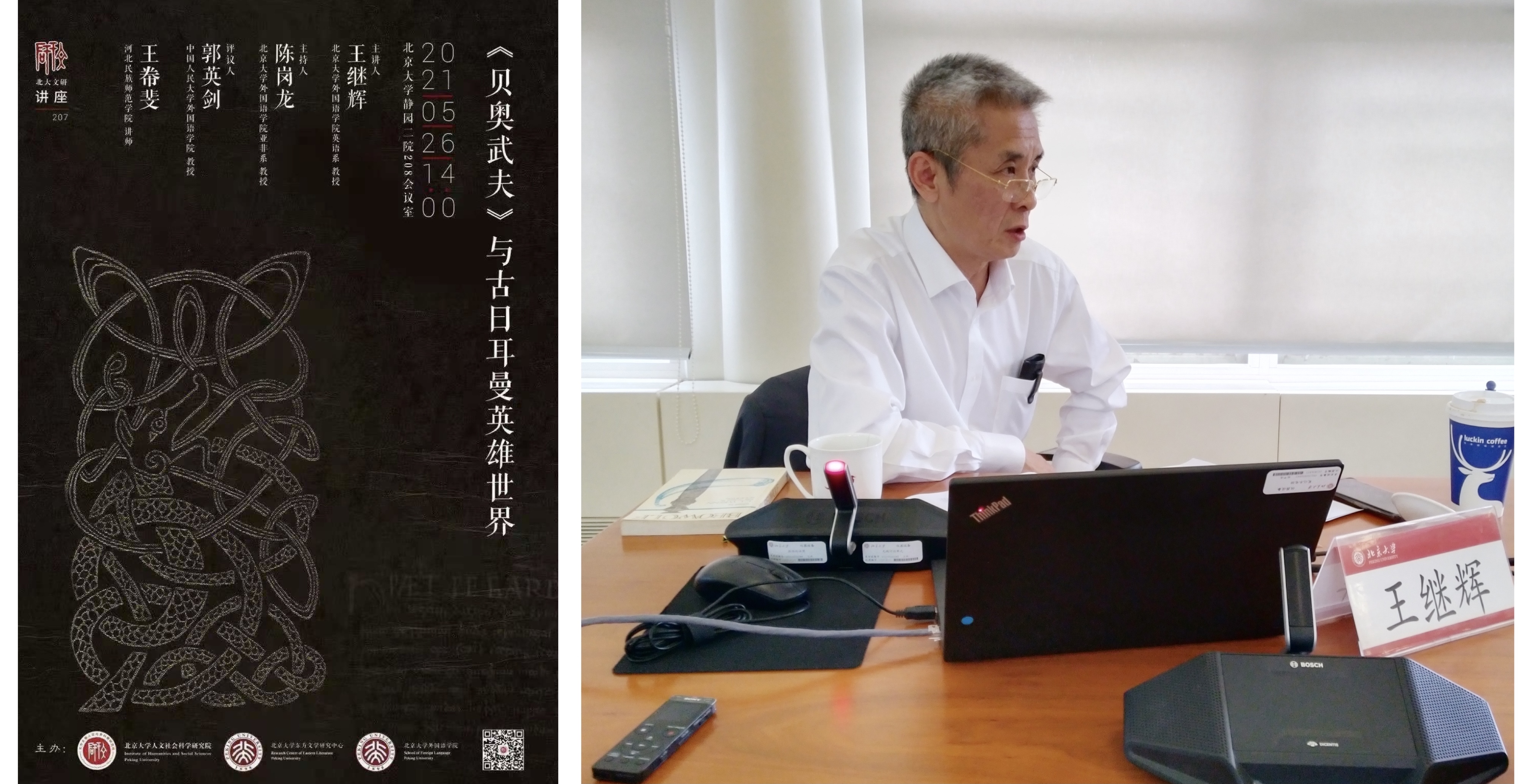 2021年5月26日下午,凯发官方网站,凯发kaifa(中国)英语系王继辉教授主讲的“《贝奥武夫》与古日耳曼英雄世界”讲座在线下线上同步举行。本次讲座由陈岗龙教授主持,中国人民大学凯发官方网站,凯发kaifa(中国)郭英剑教授、河北民族师范学院王帣斐老师评议。