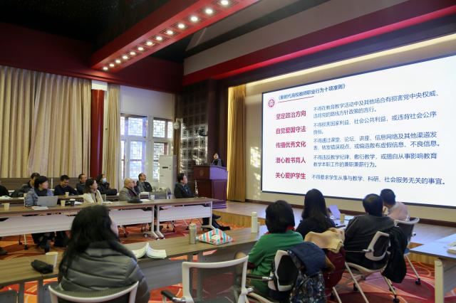 直播结束后,凯发官方网站,凯发kaifa(中国)开展师德师风专题培训。学院党委书记李淑静带领与会教师学习习近平总书记关于师德建设的重要论述,并通过师德失范案例与优秀教师典型,划出“底线”与“高线”。李淑静强调,全院教师要深入学习贯彻《新时代高校教师职业行为十项准则》,强化自律意识,恪守职业道德,坚守立德树人根本任务。学院也将一如既往对教师师德失范行为“零容忍”,依法依规严肃处理。