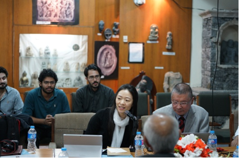 亚洲文明研究所李肖教授报告中,张嘉妹翻译;段晴报告中。