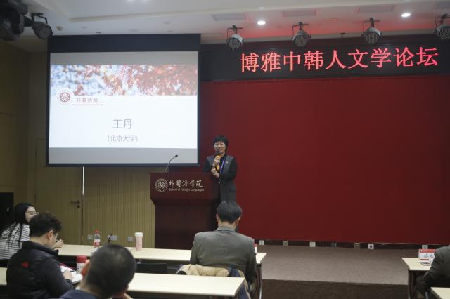 上午的开幕式包括开幕致辞和主题演讲两个环节。朝鲜(韩国)语言文化系系主任王丹教授在开幕辞中对论坛的宗旨和主题设置等内容进行了介绍,并对各位与会者的到来表示热烈欢迎和感谢。此后,山东大学朝鲜半岛研究院院长牛林杰教授发表了题为《韩国文学研究中的融通与跨界》的主题演讲,介绍了韩国学领域中跨学科研究的现状与问题,并结合文学研究的具体案例,对未来加强跨学科研究的思路与方向进行了深入分析。随后,北京大学中文系漆永祥教授发表了题为《“燕行录学”刍议》的主题演讲,对燕行录研究的必要性、燕行录的概念、分期与研究态度等问题进行了系统阐释。