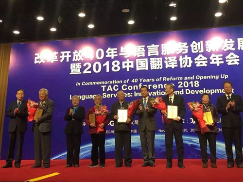 2018年11月19日上午,改革开放40周年与语言服务创新发展论坛暨2018中国翻译协会年会在北京举行。仲跻昆先生获得了代表我国翻译界最高荣誉的“翻译文化终身成就奖”。此前,北京大学的季羡林先生、许渊冲先生都曾获得过该奖项。
