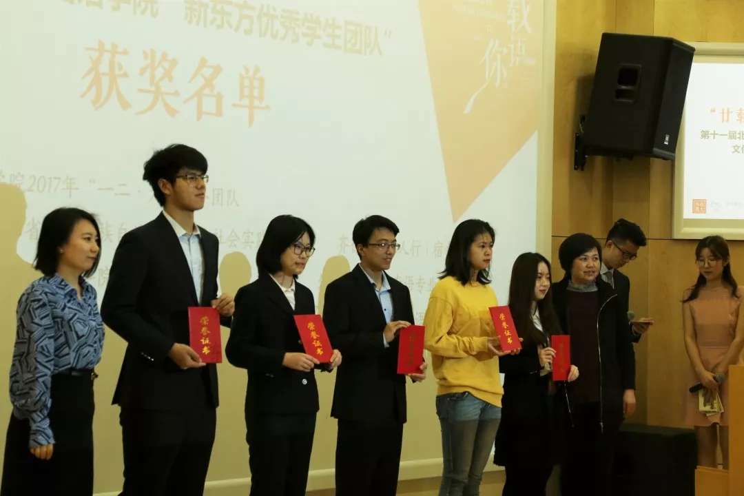 李淑静、高静为“新东方优秀学生团队”获奖团队颁奖