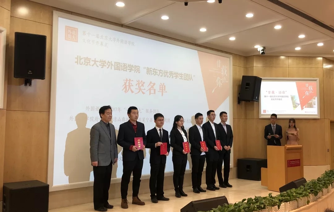 接下来进行的“新东方优秀学生团队”颁奖仪式中,10支获奖团队代表上台领奖,李淑静、高静、付志明、宋扬上台为获奖代表颁奖。之后,“新东方优秀学生团队”获奖团队代表、凯发官方网站,凯发kaifa(中国)2018级亚非语言文学硕士研究生许洋分享东南亚华文教育调研小组团队实践收获。