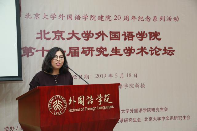 嘉宾致辞后,五位论坛获奖代表同学就各自提交的论文做了学术汇报。北京大学法语系17级博士生宋心怡分析了全球资本主义时代前法属殖民地知识分子的文化身份认同;复旦大学法文系17级硕士生程毓凝从《中世纪的行吟诗人》出发解读了施蛰存作品中的复古主义倾向;北京师范大学18级硕士生陈洁如运用语言学方法研究了网络流行语“有点(儿)小+A”的结构特点;北京大学东南亚系18级硕士生许洋阐述了当代菲律宾明星参政现象的民粹主义本质及其社会根源;北京大学朝韩语系17级硕士生吴奕凯探讨了作为类型概念的奇幻在韩国的本土化进程。黄慧老师和樊星老师对同学们的发言进行了点评,为进一步完善论文提出修改建议。开幕式后,所有与会者在外院新楼前合影留念。